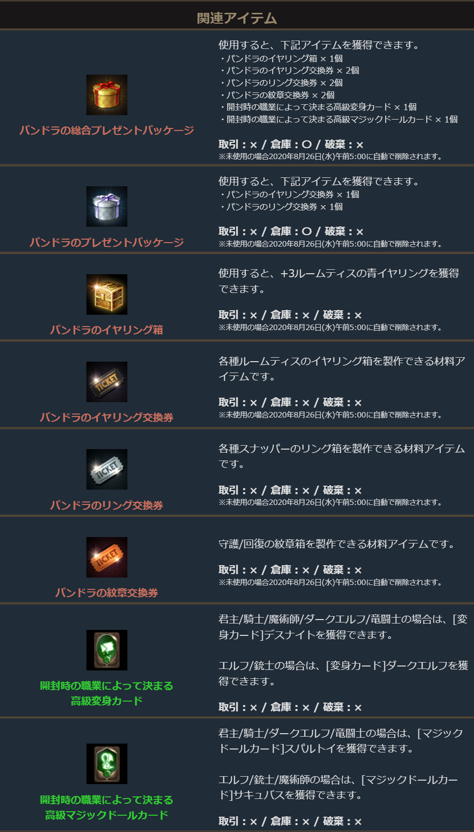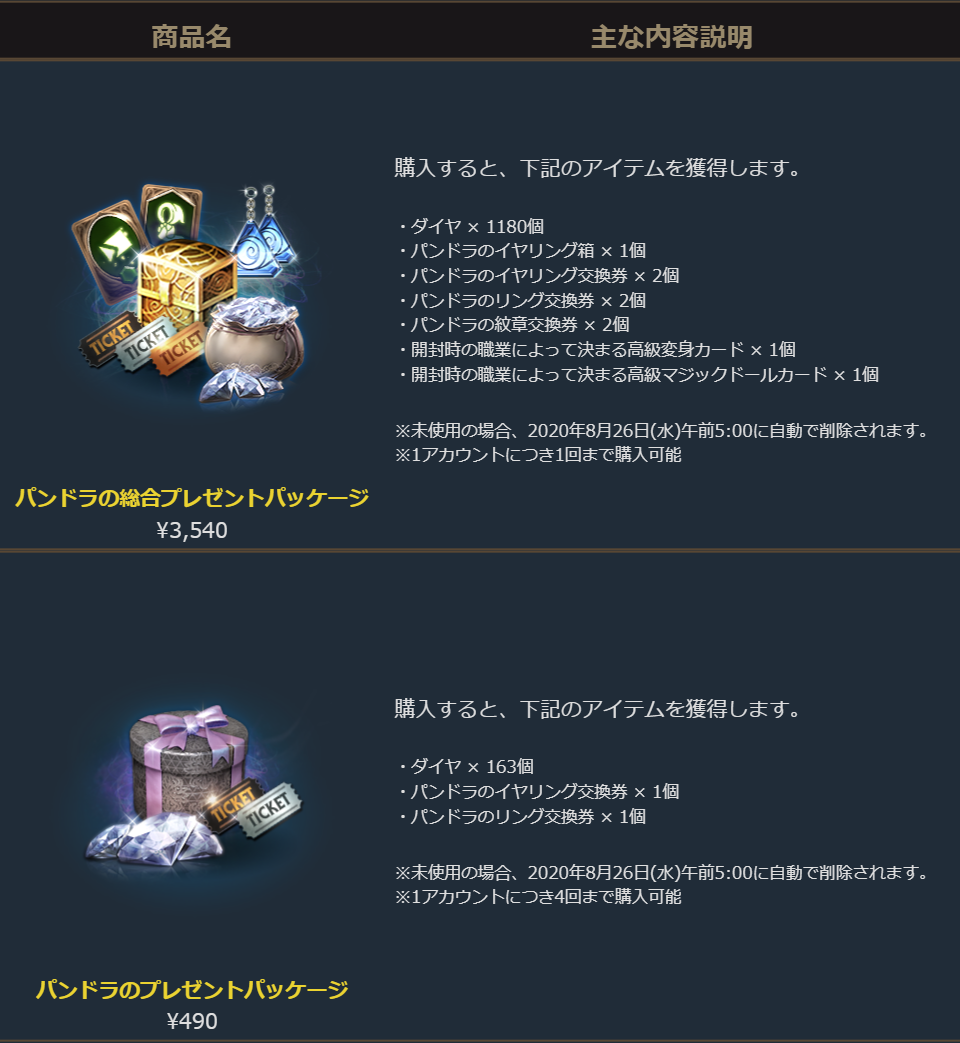 2020年7月29日より、ゲーム内ショップでお得な「パンドラのプレゼントパッケージ」の販売を開始しました。