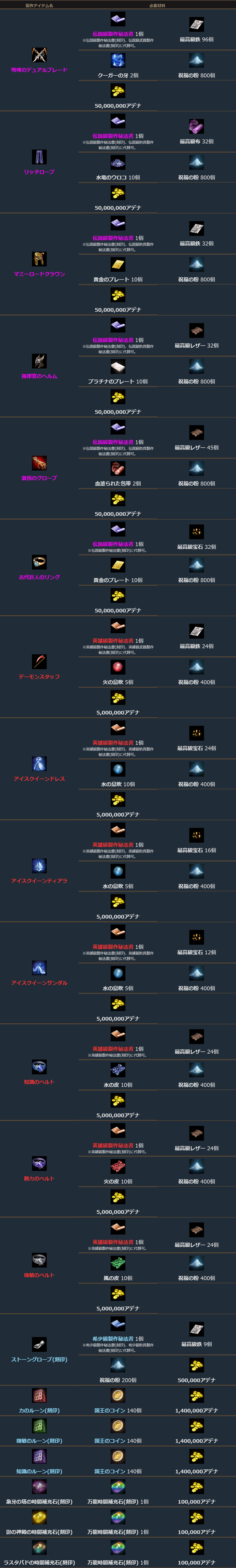 ・「一部の伝説級や英雄級装備などを製作リスト」に追加しました。