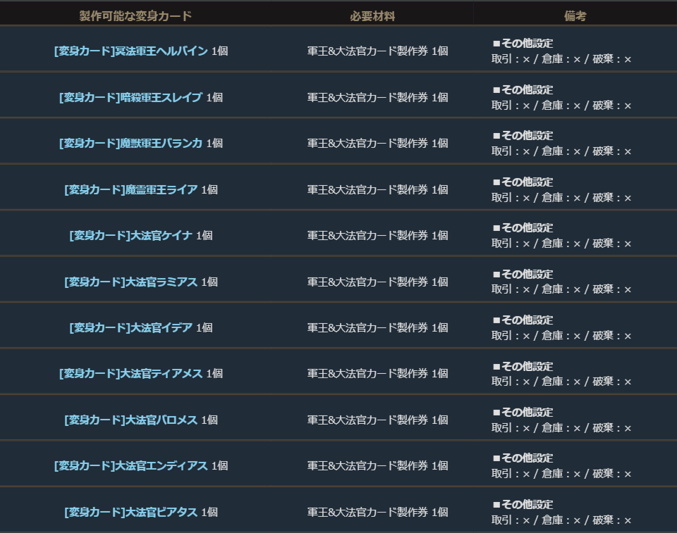 ※★印の変身が「軍王&大法官変身カード製作券」で製作できる変身となります。