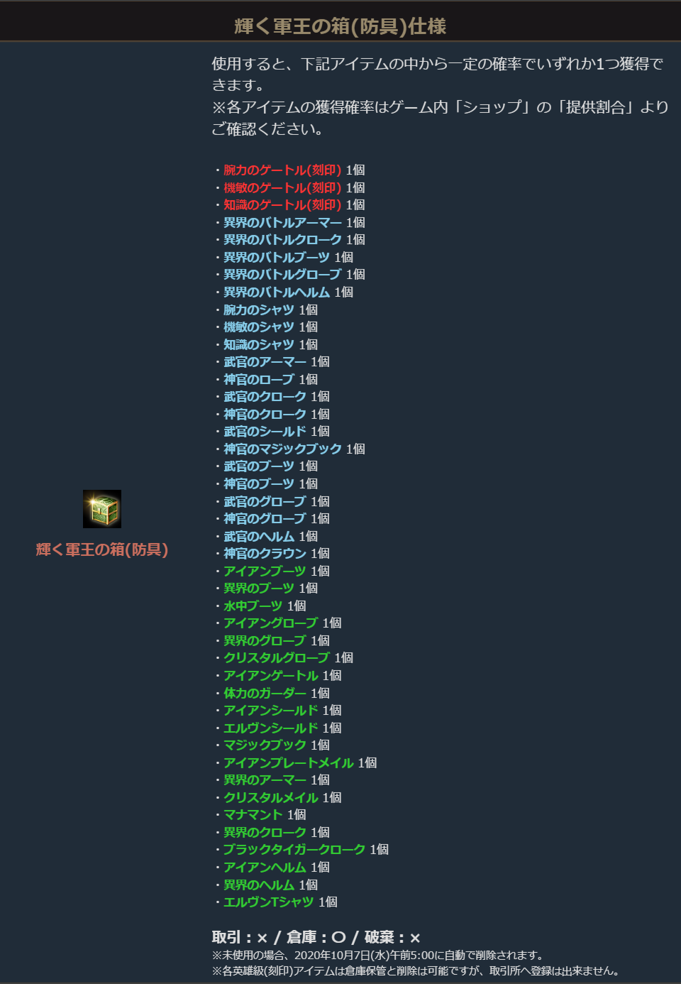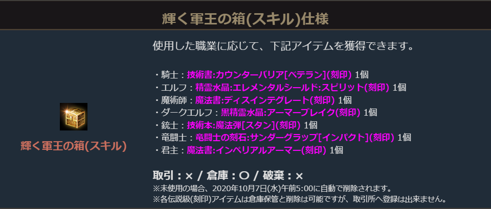 ※一部アイテムは未使用の場合、一定期間が経過すると自動で削除されます。詳しくは各アイテムの詳細をご確認ください。