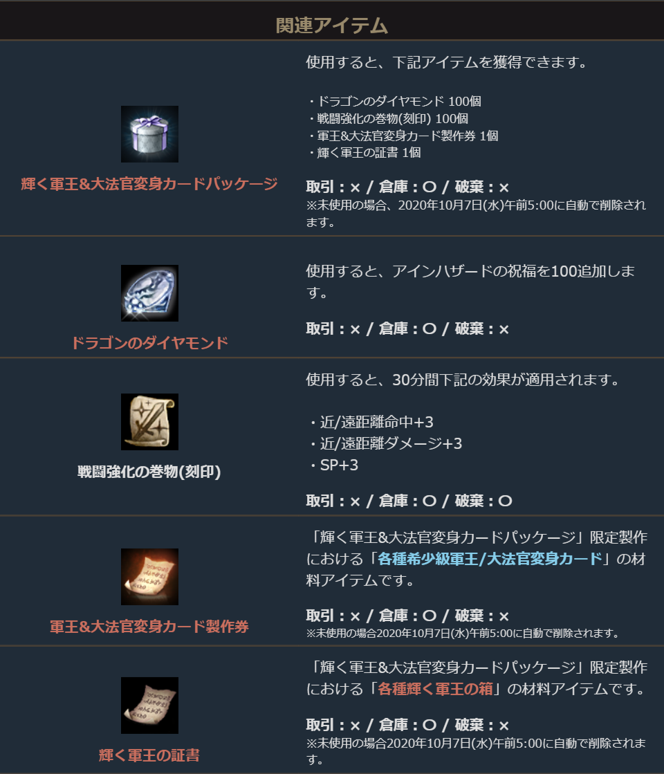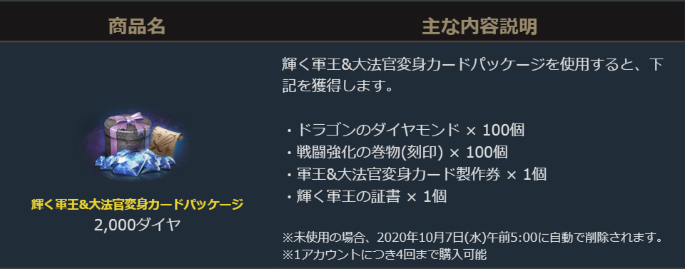 2020年9月16日より、ゲーム内ショップで「輝く軍王&大法官変身カードパッケージ」の販売を開始しました。