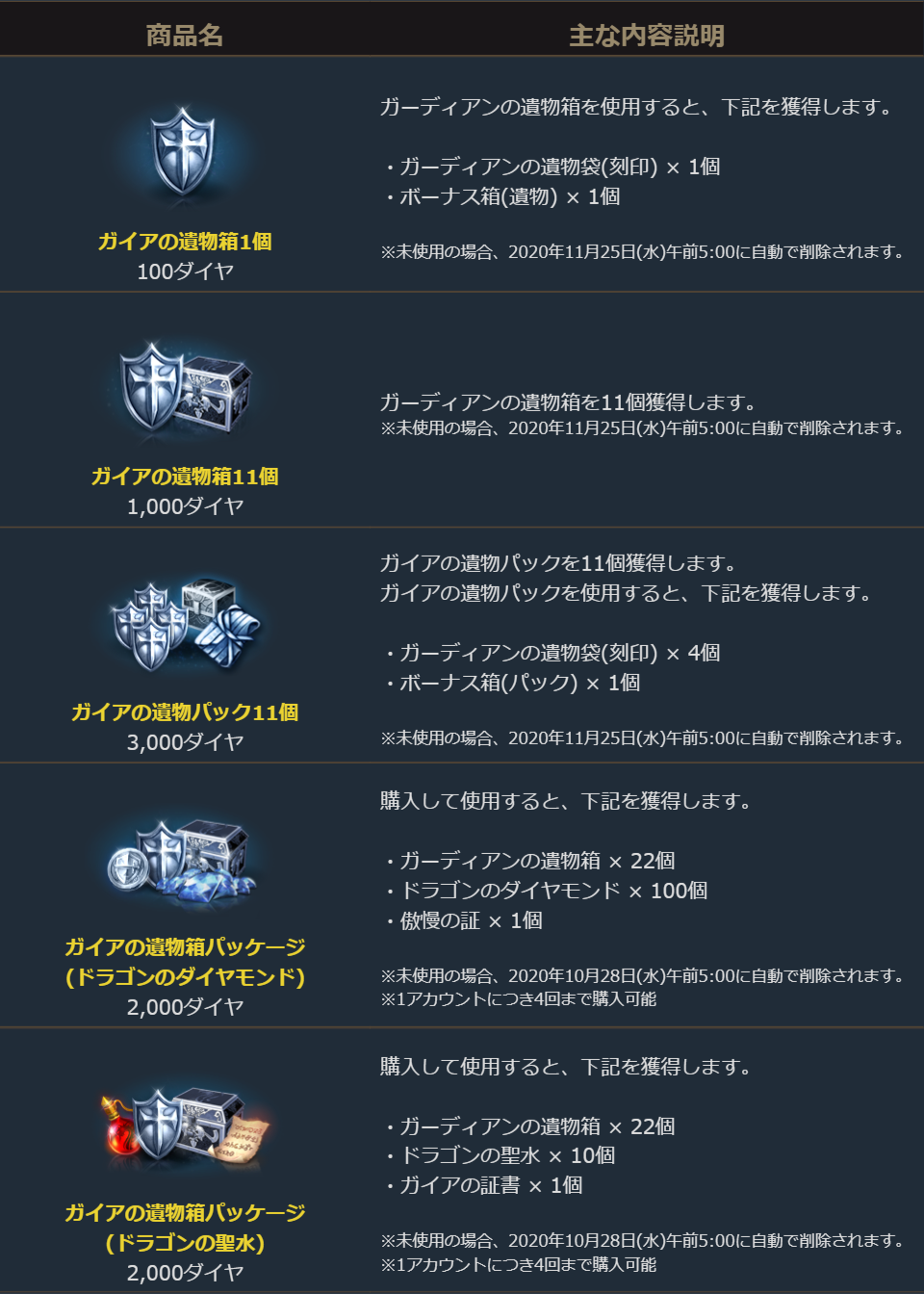 2020年9月29日より、ゲーム内ショップで「ガイアの遺物」の販売を開始しました。