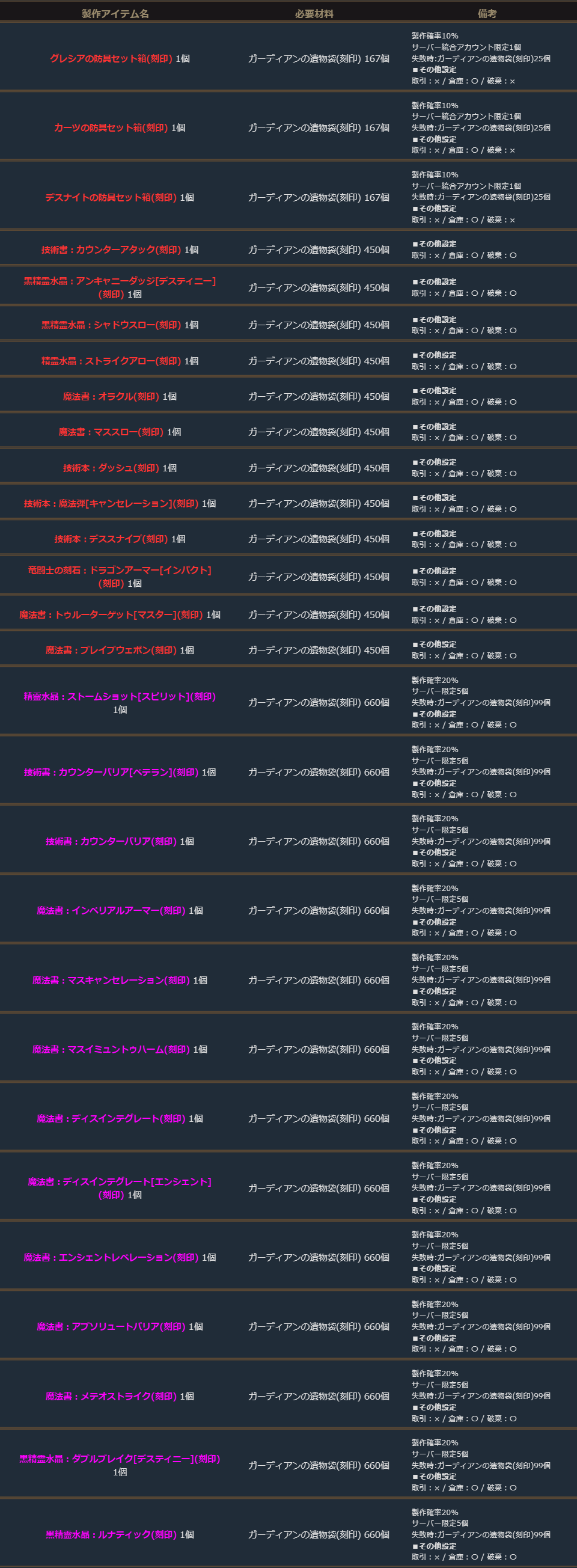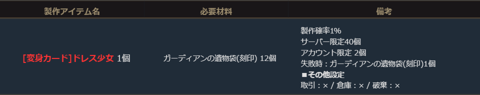 ※サーバー数量限定の製作アイテムは、各サーバーで製作できる数量に上限があります。