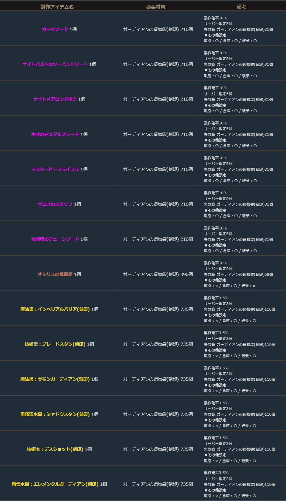 「オシリスの武器箱」の製作限度をサーバー限定3個に変更しました。