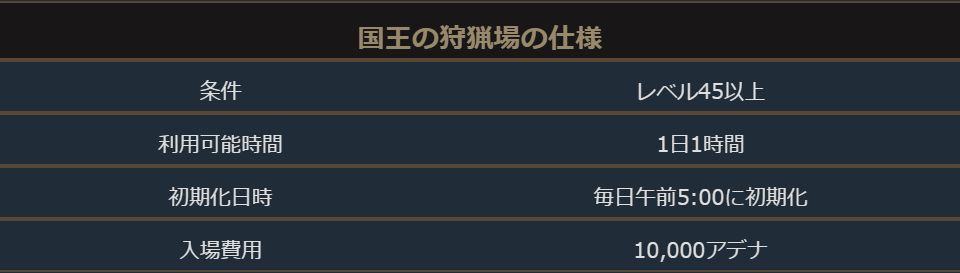 イベント期間中、「メニュー > ダンジョン > 特殊ダンジョン」より、「国王の狩猟場」に入場できます。