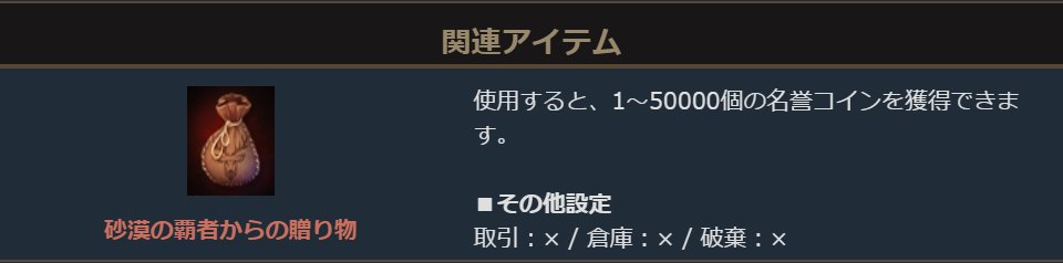 ※「砂漠の覇者からの贈り物」はイベントアイテムであり、イベント期間外の陣営戦では獲得できません。