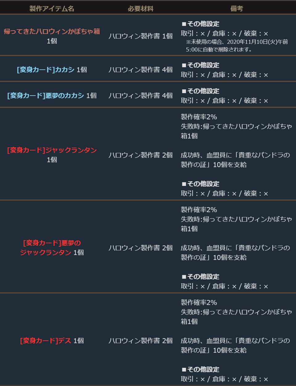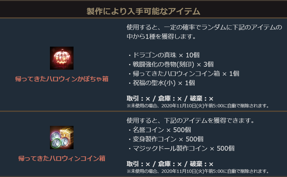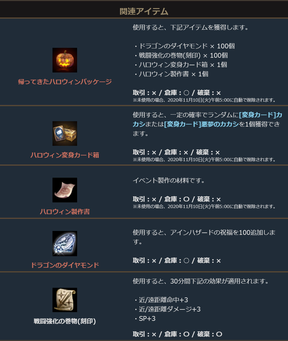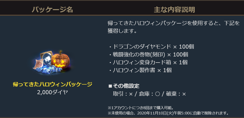 2020年10月28日より、ゲーム内ショップで「帰ってきたハロウィンパッケージ」の販売を開始しました。