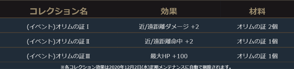 イベントコレクション効果は2020年12月2日(水)午前5:00に自動で削除されます。