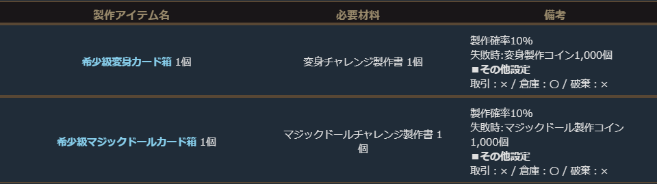 ※一部製作アイテムは、製作に失敗する場合があります。