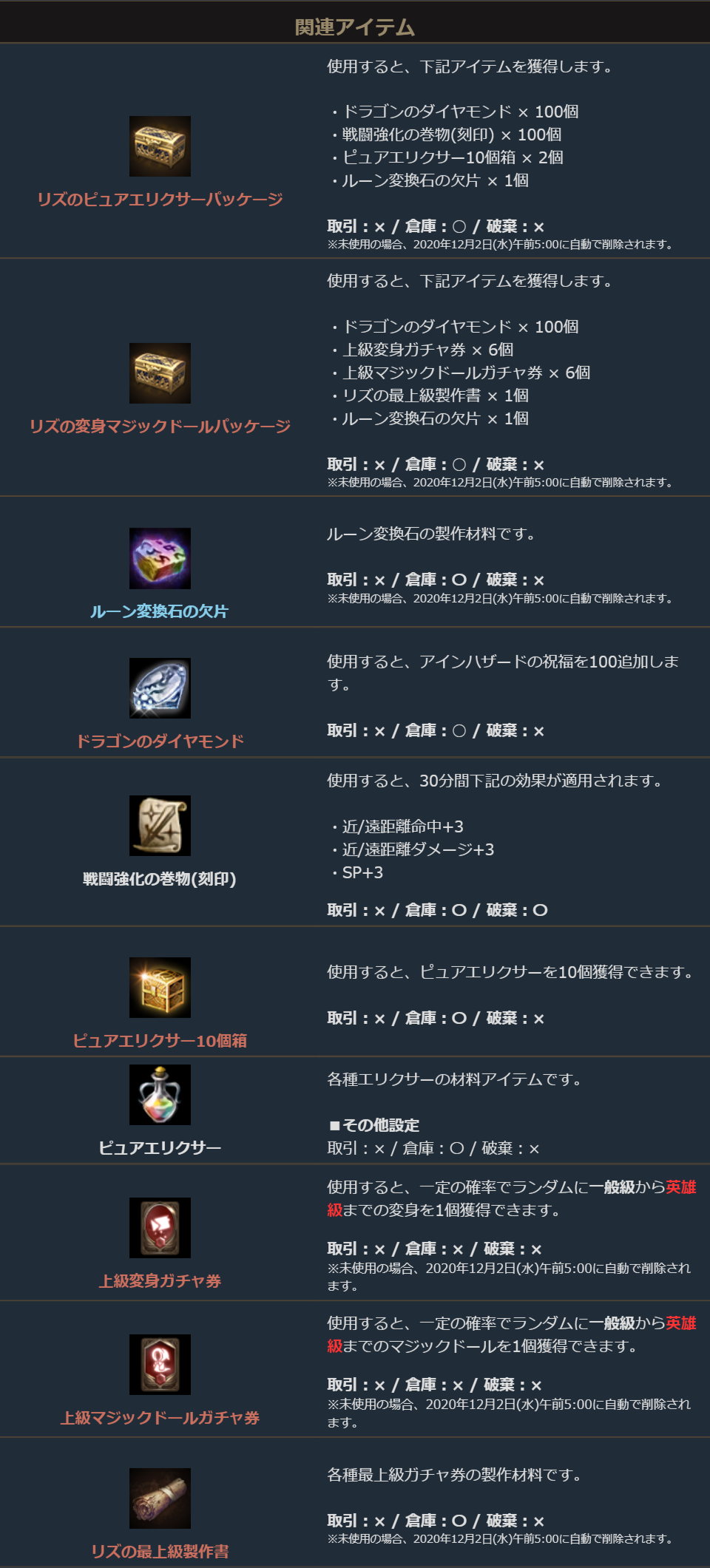 2020年11月10日より、ゲーム内ショップで「リズのルーン製作チャレンジパッケージ」の販売を開始しました。