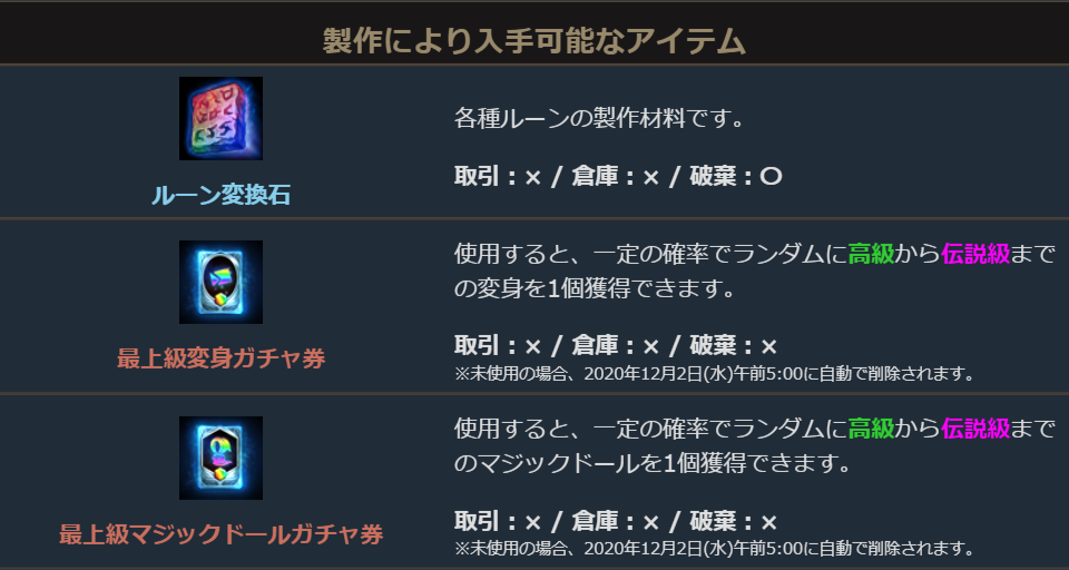 ※一部アイテムは未使用の場合、一定期間が経過すると自動で削除されます。詳しくは各アイテムの詳細をご確認ください。