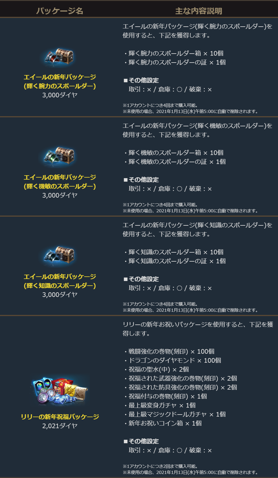 2020年12月30日より、ゲーム内ショップで「新年パッケージ」の販売を開始しました。
