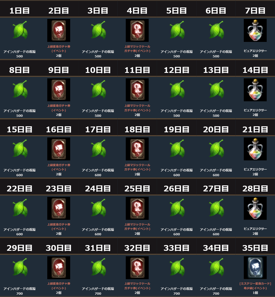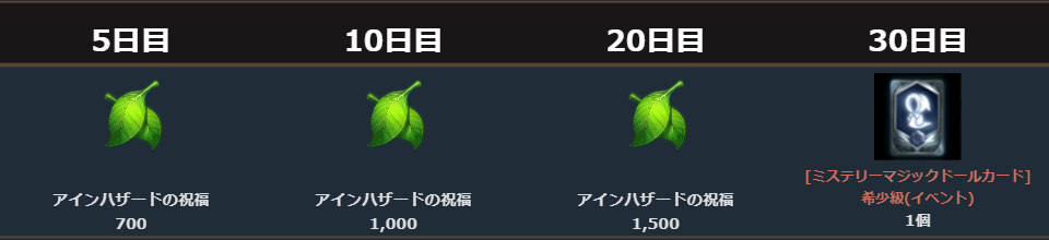 36日目以降は、出席報酬として以下の報酬を受け取ることができます。