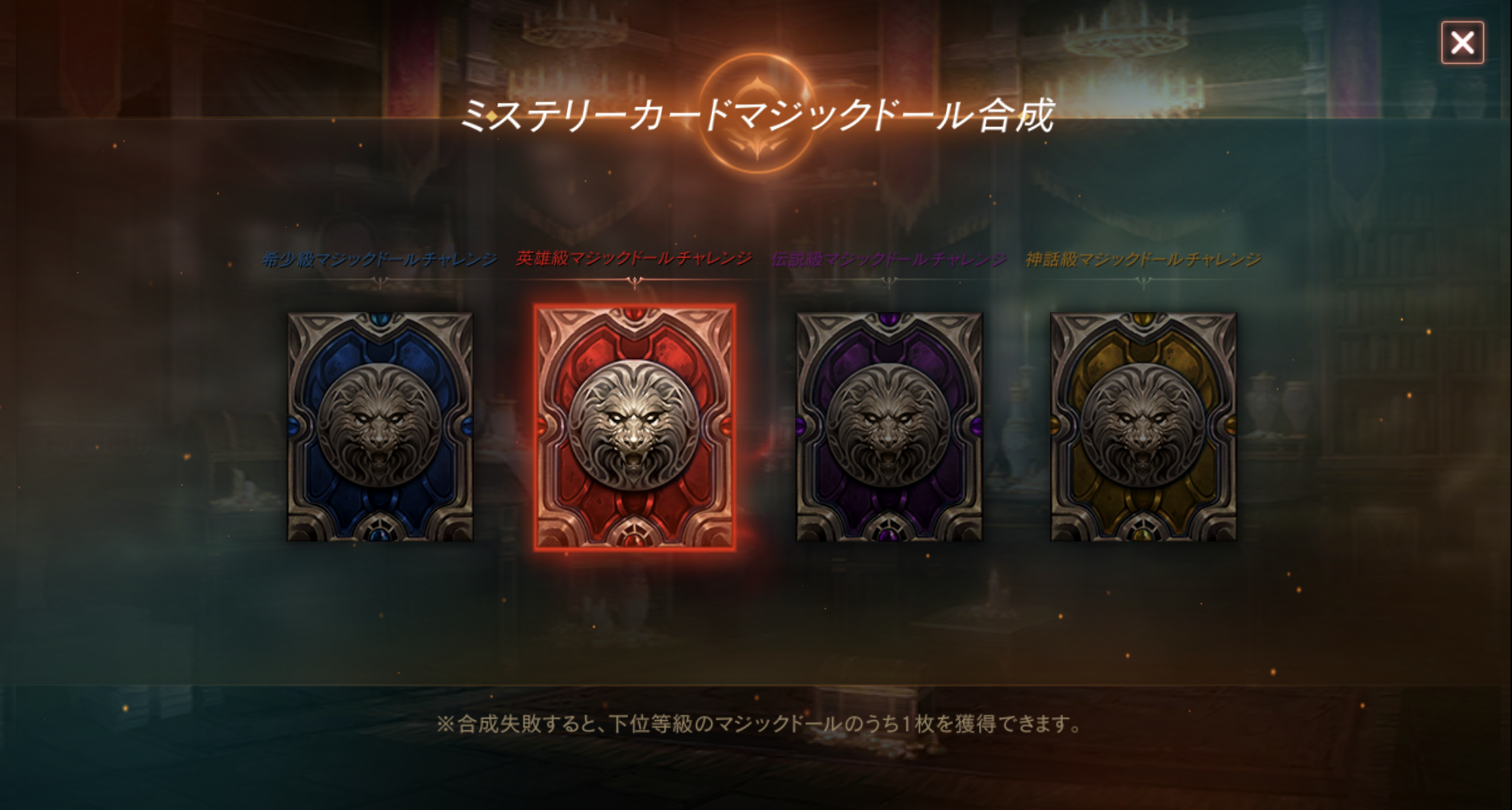 使用すると希少級合成を通じて、英雄級マジックドールカードの獲得に挑戦できます。