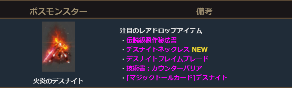 フレイムダンジョン2階最奥には、ボスモンスター「火炎のデスナイト」が出現します。