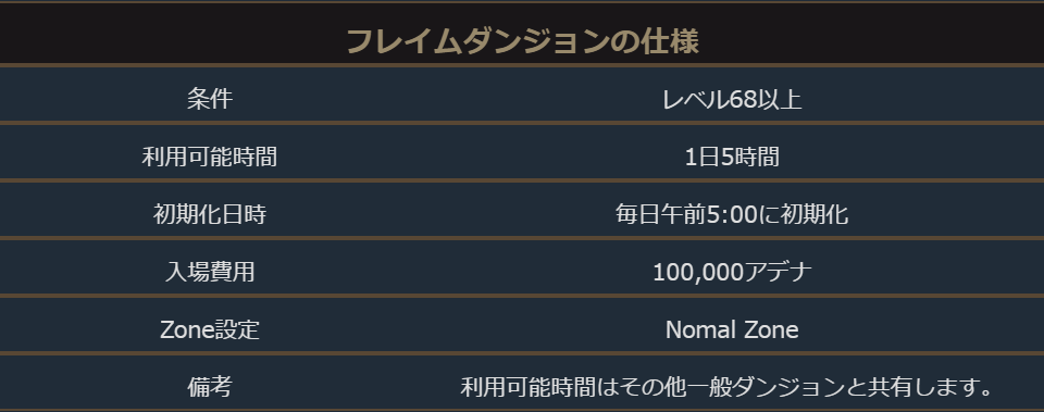 フレイムダンジョンは1日に5時間まで利用できます。ダンジョンの利用時間は、その他一般ダンジョンと共有します。