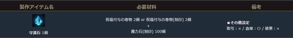 守護石は「ゲーム内メニュー > 製作 > その他」より製作することができます。