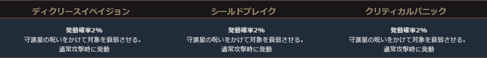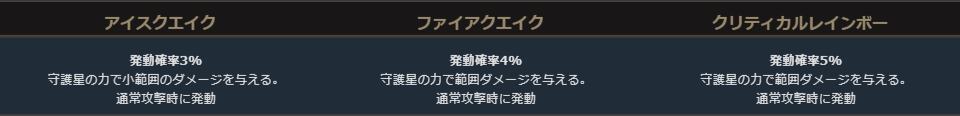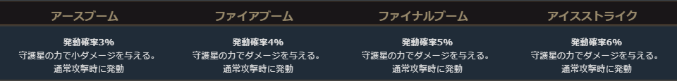 今回のアップデートで追加された「守護星ゾウ」は効果を発動させるとダメージや命中などのステータスを増加させ、様々な確率発動スキルを習得することができます。
