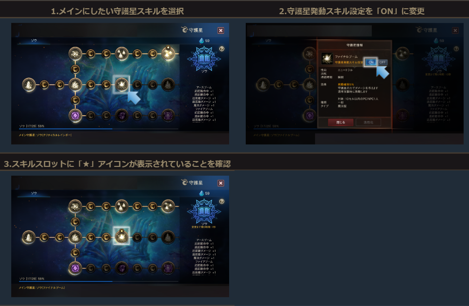 スキルスロットを選択することで、メイン守護星スキルを設定することができます。