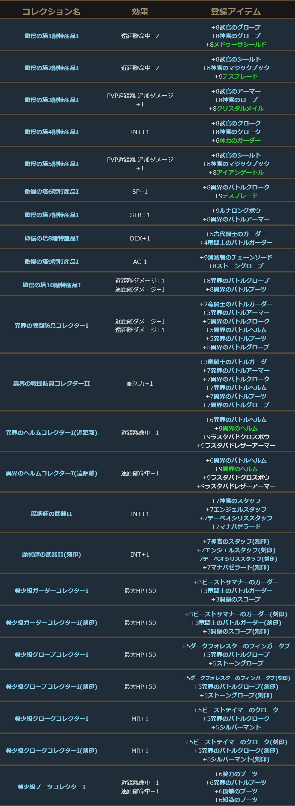└主に異界防具の希少級アイテムコレクションを追加しました。