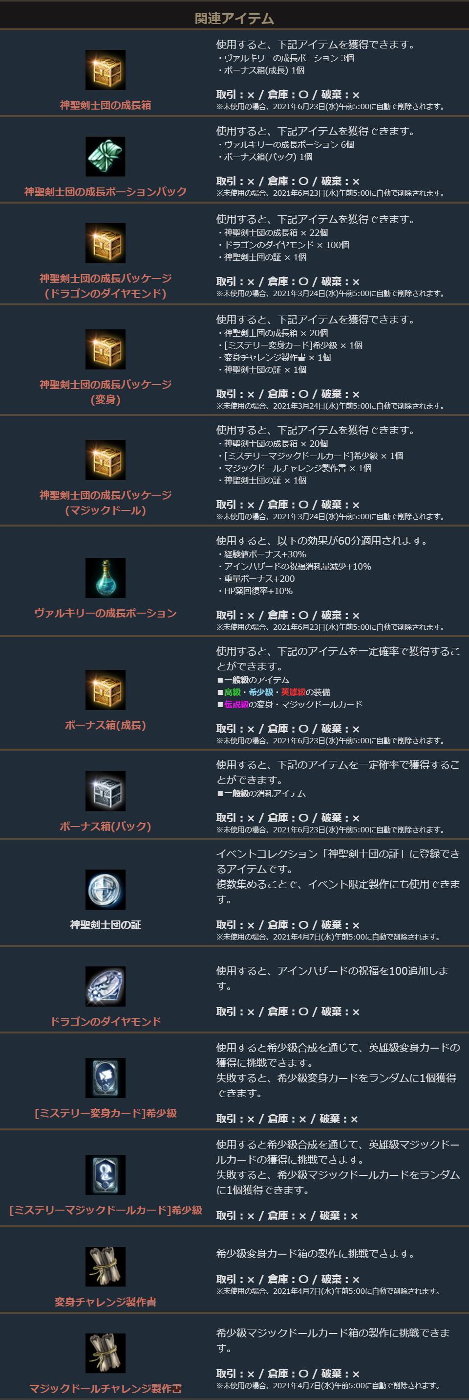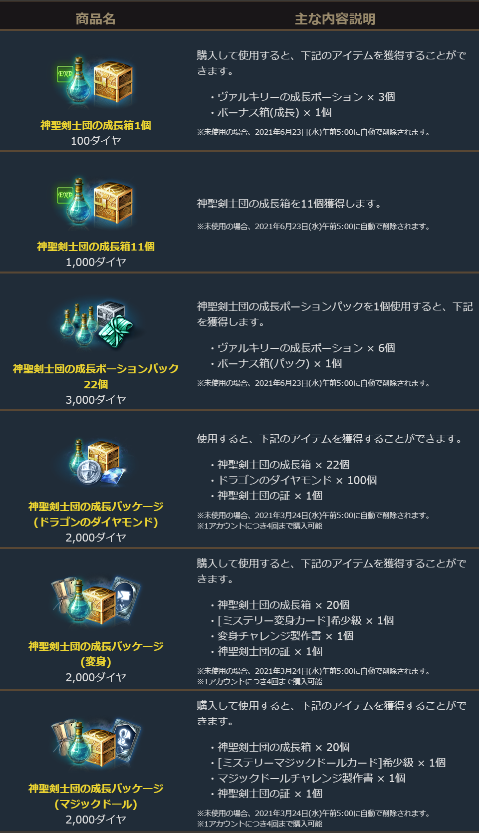 2021年2月24日より、ゲーム内ショップで「神聖剣士団の成長箱」の販売を開始しました。