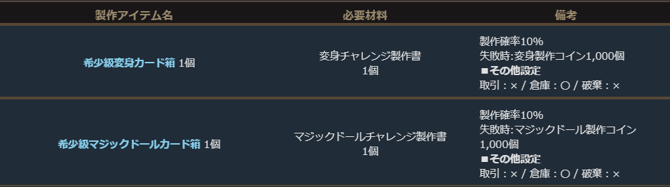 ※期間限定の製作アイテムは、製作可能期間のみゲーム内の「製作」より製作することができます。