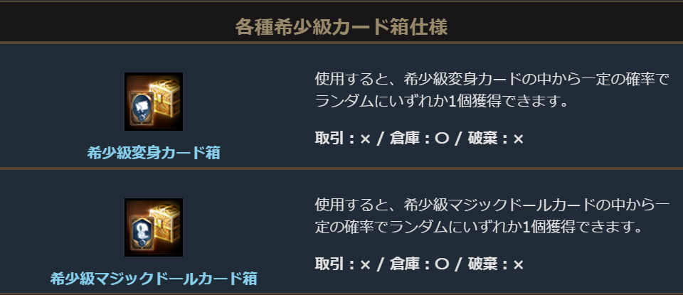 ※一部アイテムは未使用の場合、一定期間が経過すると自動で削除されます。詳しくは各アイテムの詳細をご確認ください。