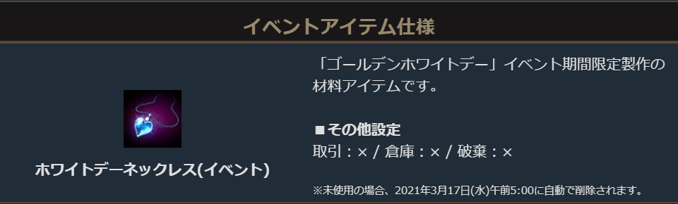 「ホワイトデーネックレス(イベント)」を沢山集めてイベント期間限定製作にチャレンジしてください。