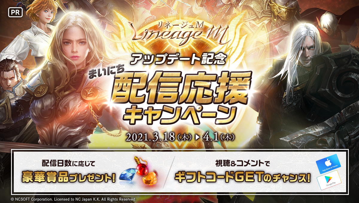 MirrativにてリネージュMを配信すると、配信日数に応じて豪華アイテムがもらえる「まいにち配信応援キャンペーン」を開催!