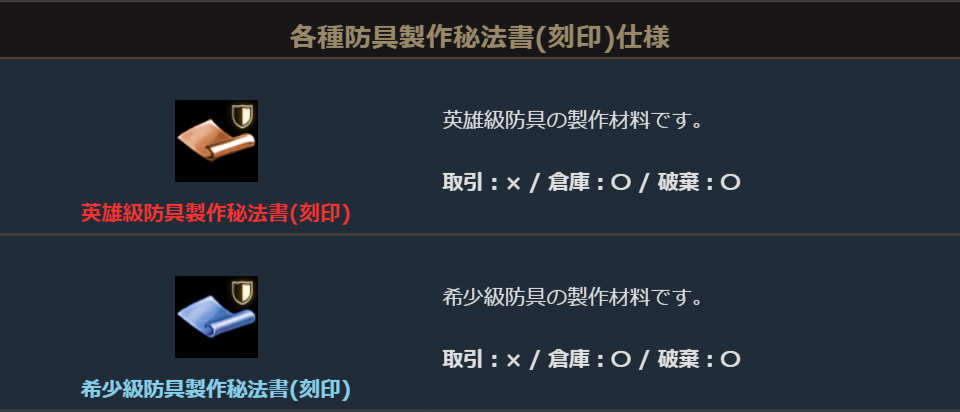 ・ナルエンの製作秘法書の欠片(防具)の製作
