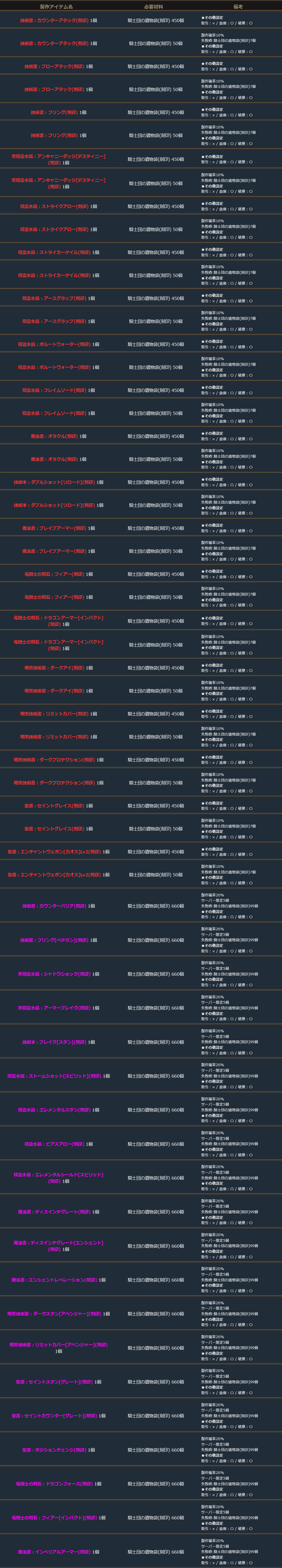 ※製作制限が表示されているアイテムは、制限回数製作されると製作できなくなります。