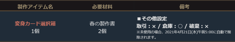 ※自動で削除された場合でもアイテムは使用したものとして扱われます。