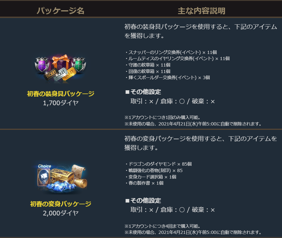 2021年3月31日より、ゲーム内ショップで「初春パッケージ」の販売を開始しました。