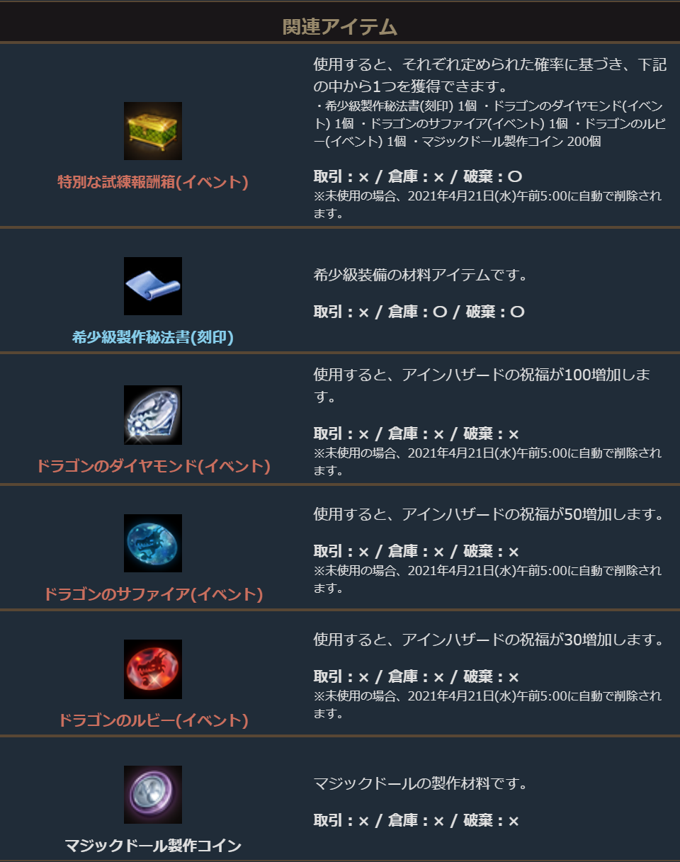 イベント期間限定の試練ダンジョンに挑戦することで、アインハザードの祝福やアイテムが獲得できます。