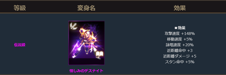 憎しみのデスナイト変身ガチャパックはデスナイトをピックアップしたガチャパックです。英雄級の変身はデスナイト「黄金」などの各種英雄級デスナイトのみが、伝説級変身は新規登場の憎しみのデスナイトのみが出現します。