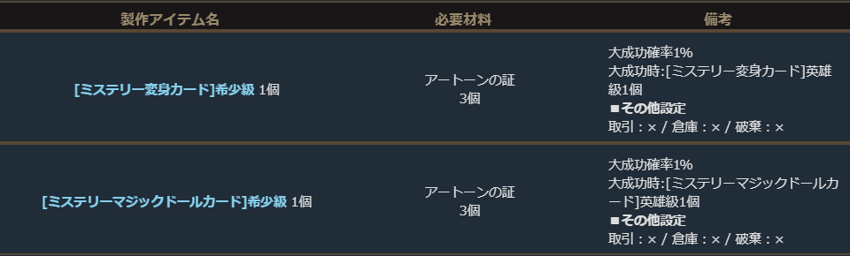 ※サーバー数量限定の製作アイテムは、各サーバーで製作できる数量に上限があります。