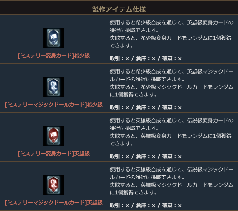 ※期間限定の製作アイテムは、製作可能期間のみゲーム内の「製作」より製作することができます。