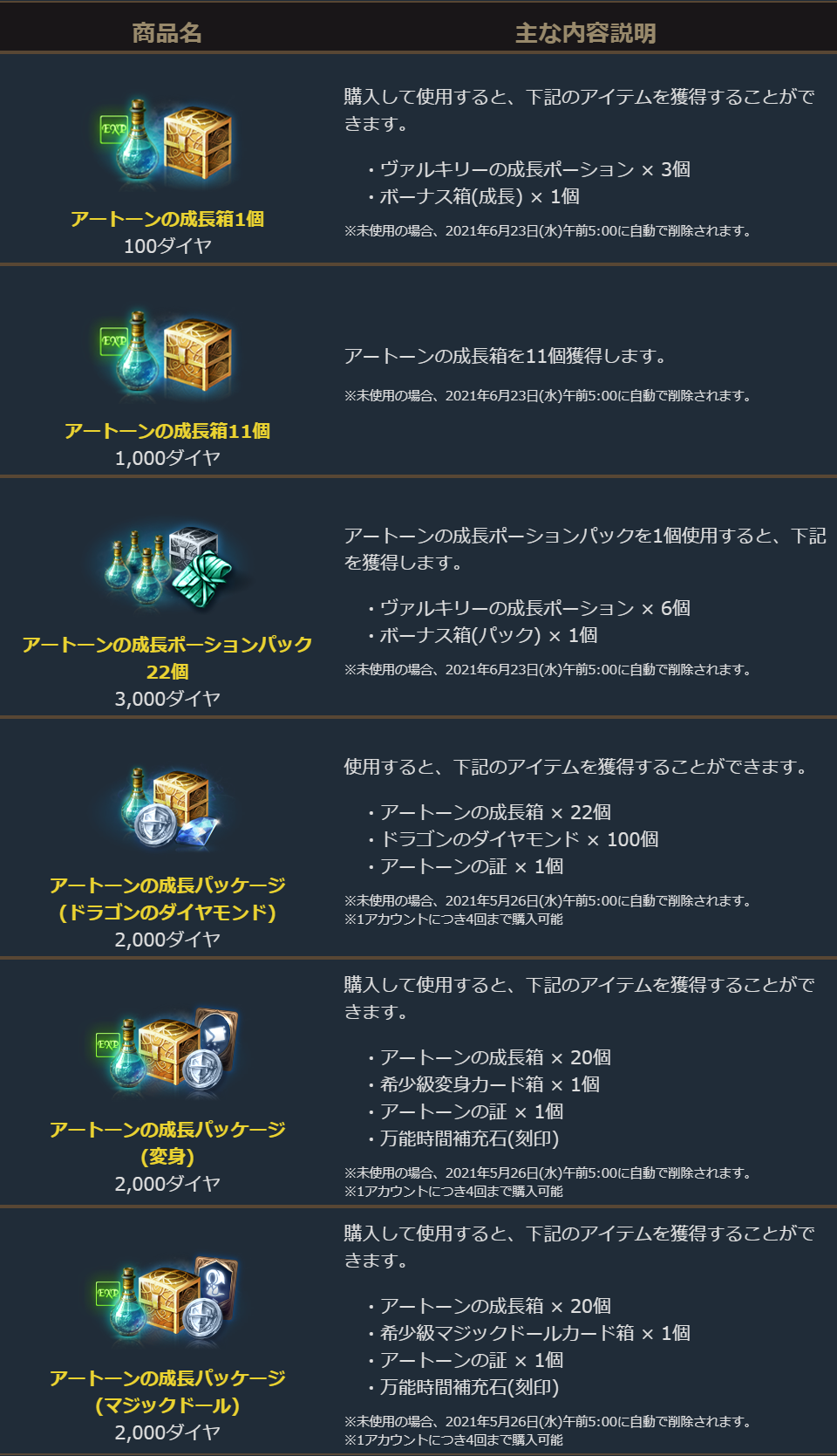 2021年4月28日より、ゲーム内ショップで「アートーンの成長箱」の販売を開始しました。