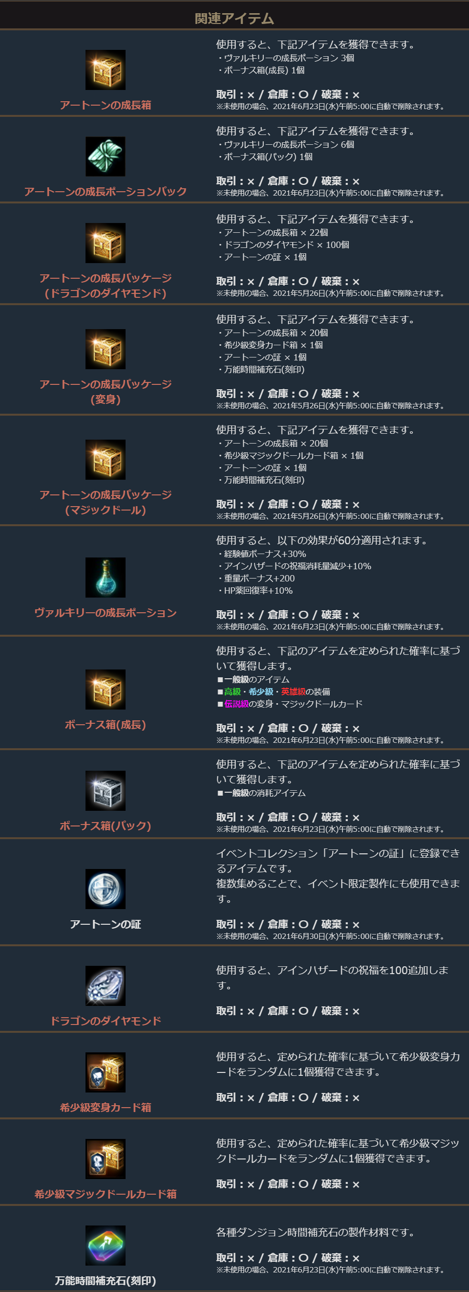 「アートーンの成長パッケージ(ドラゴンのダイヤモンド/変身/マジックドール)」に付属している「アートーンの証」を使用して、期間制のコレクションを登録することができます。