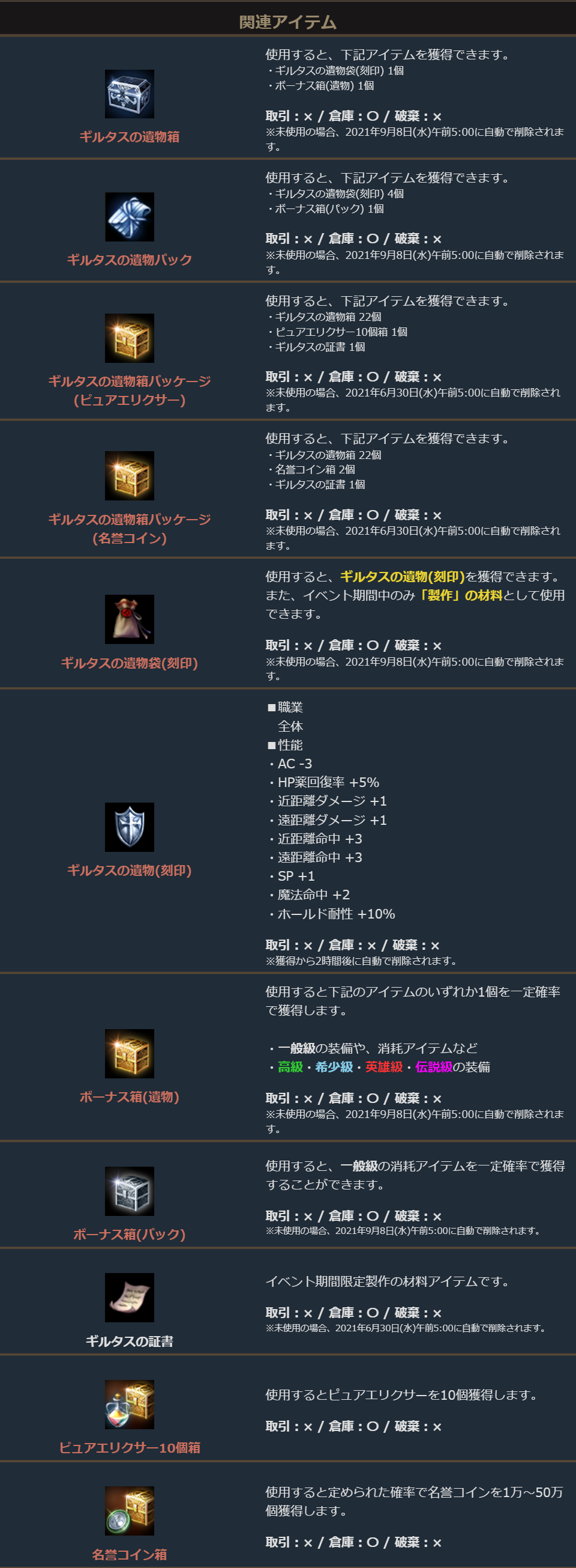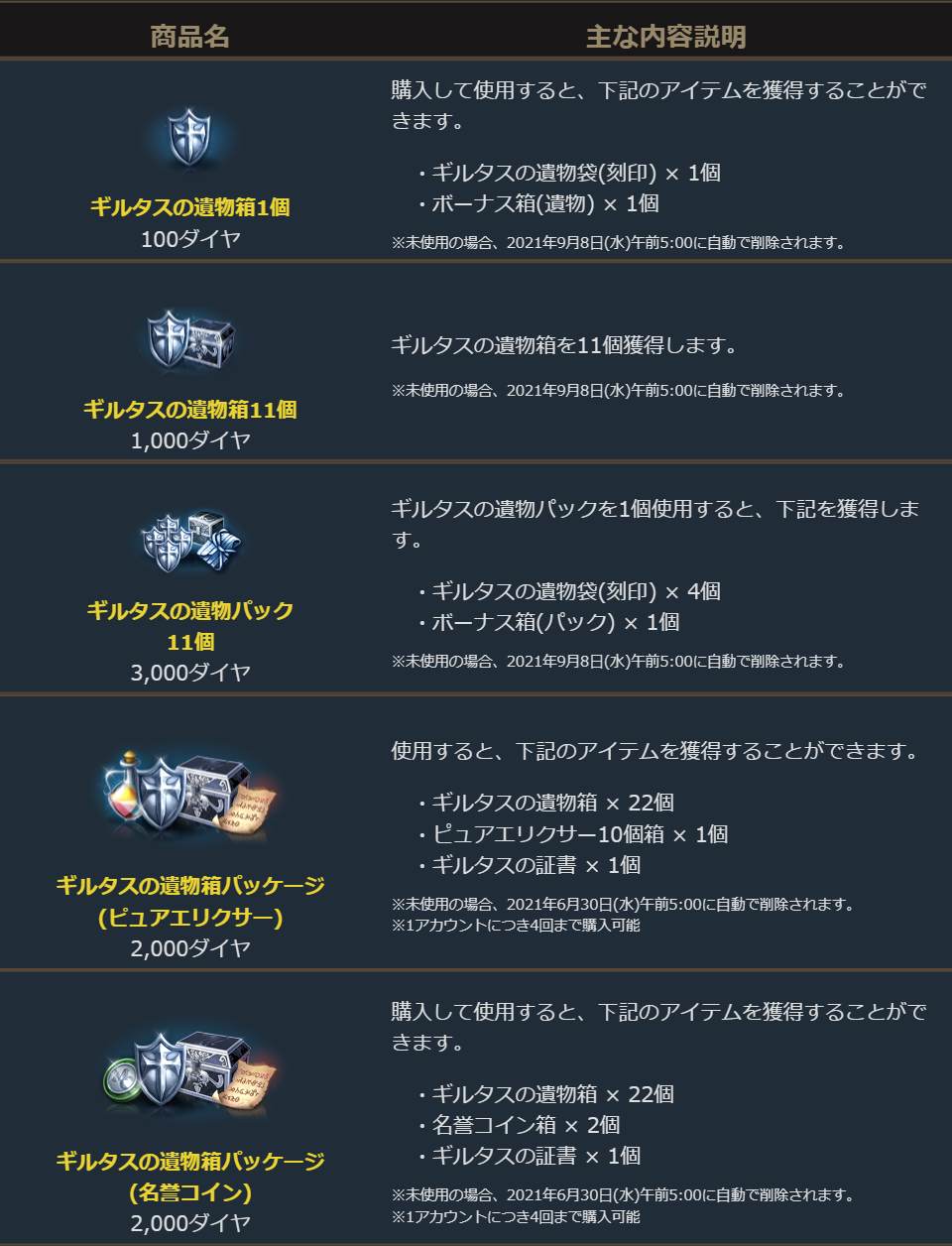 2021年5月26日より、ゲーム内ショップで「ギルタスの遺物箱」の販売を開始しました。