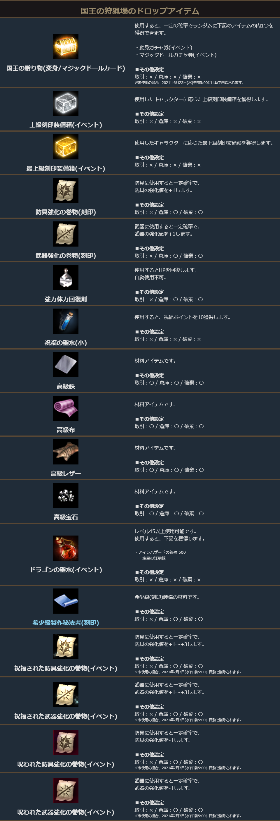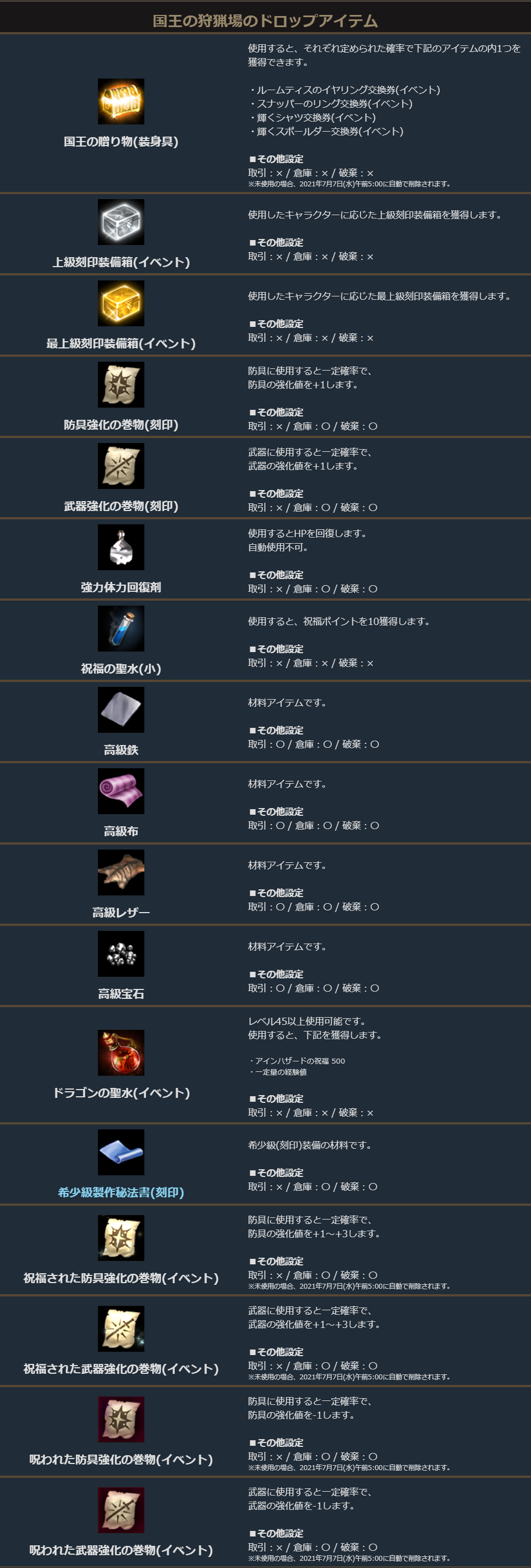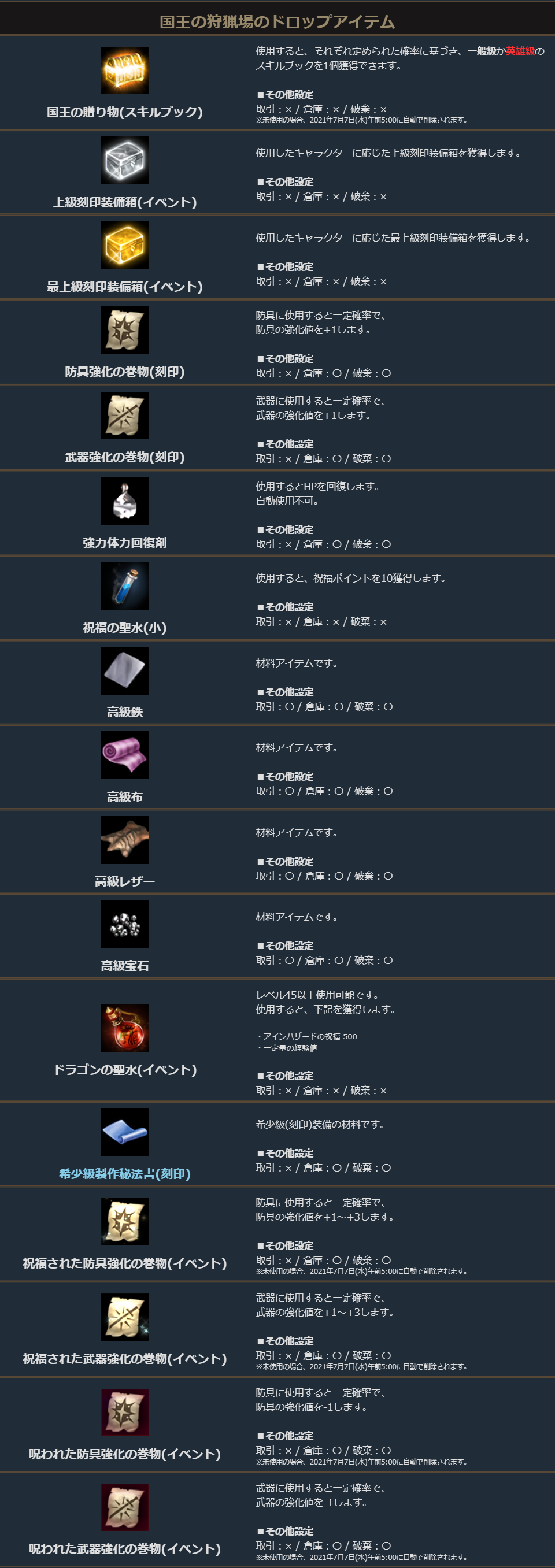 勿論、今週も「国王の狩猟場」ではさらに祝福/呪われた強化の巻物のドロップが狙えます!