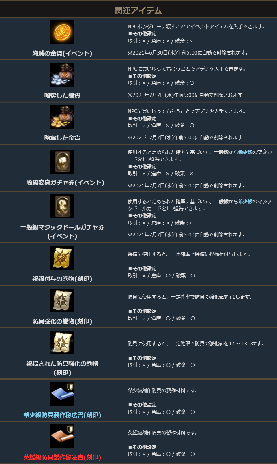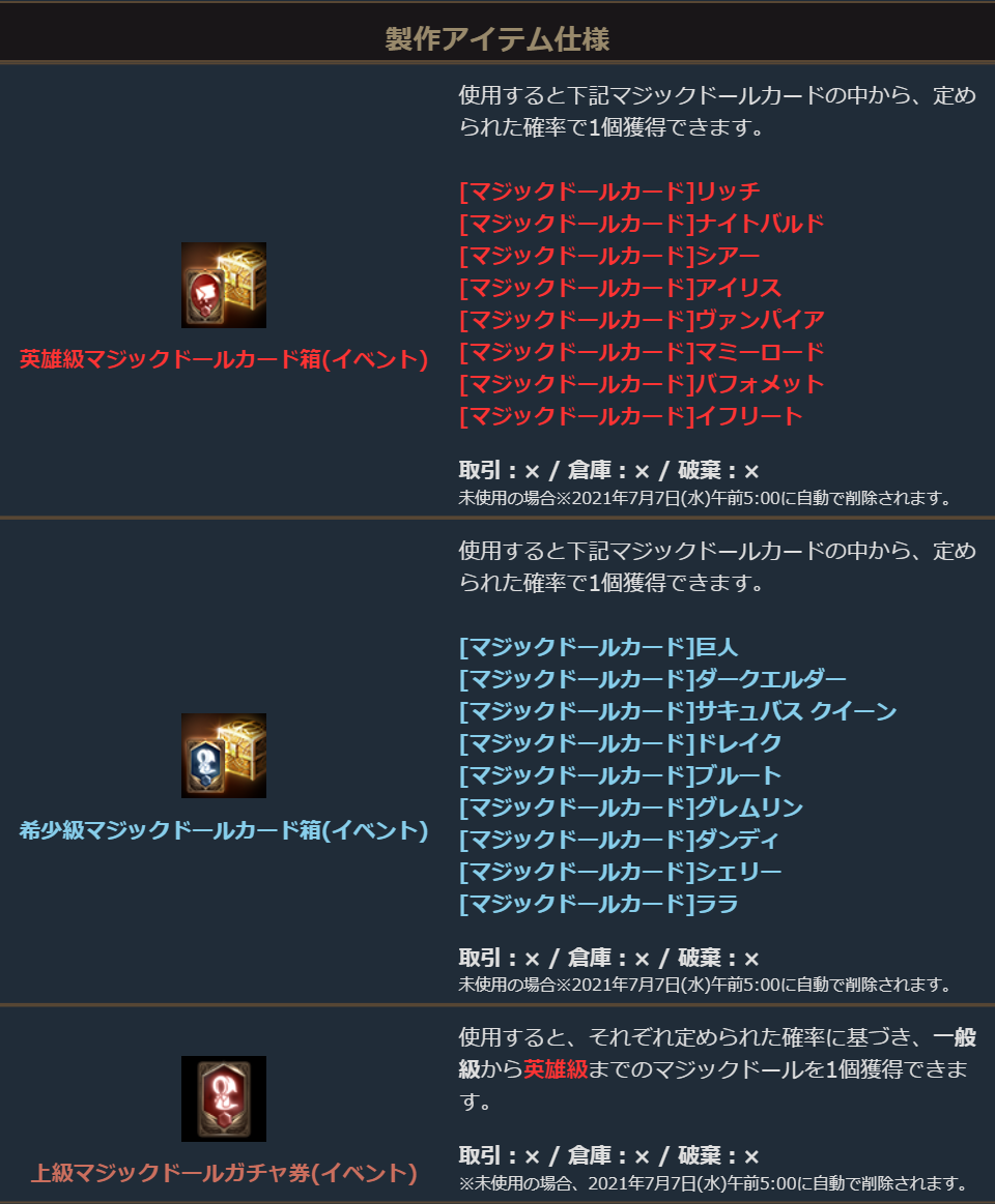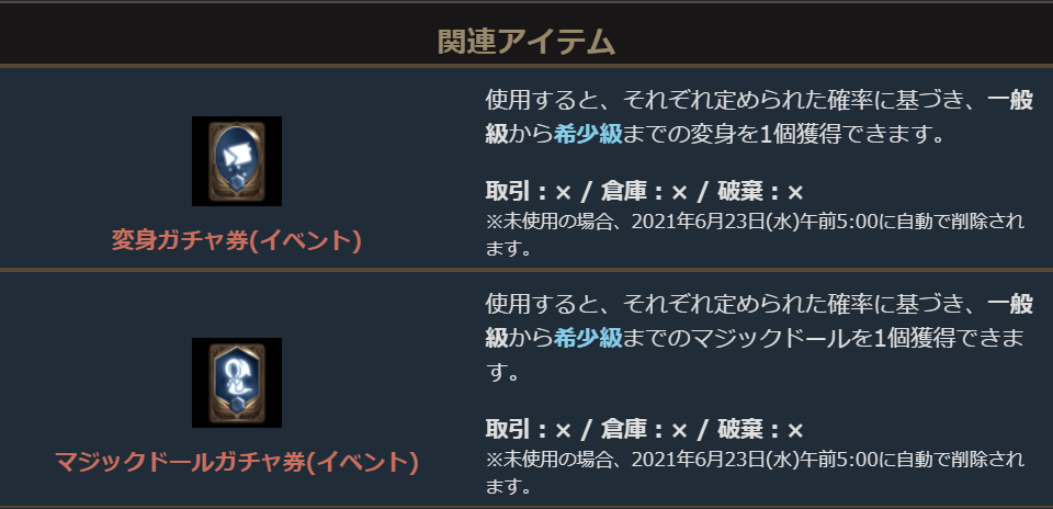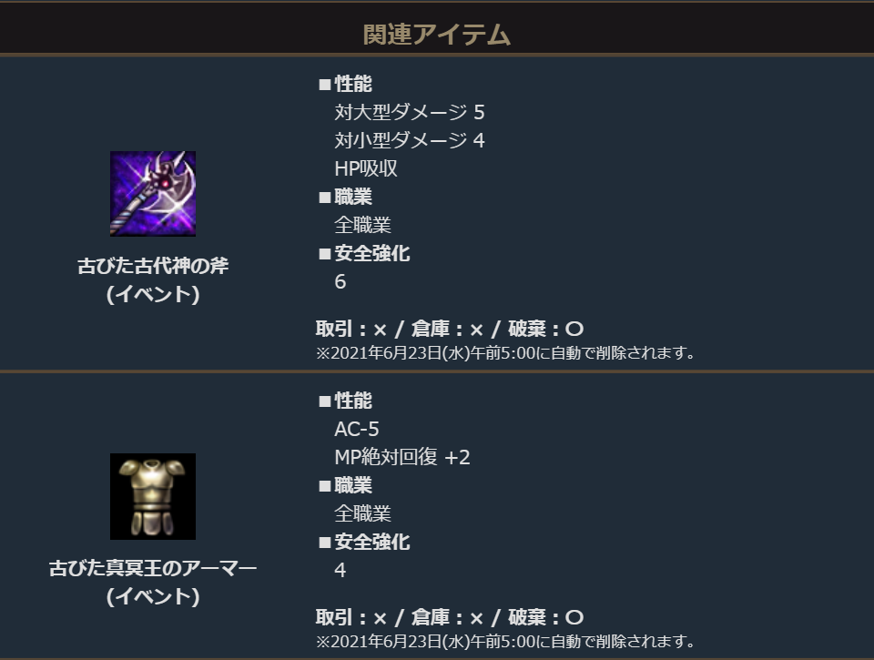 ※イベント装備以外のアイテムについては、1日に入手できる量に制限があります。