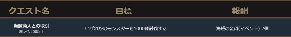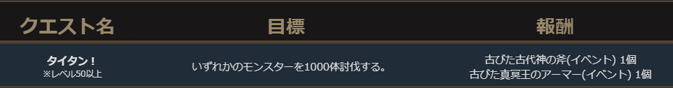 イベント期間中、レベル50以上のキャラクターには下記のクエストが毎日配信されます。