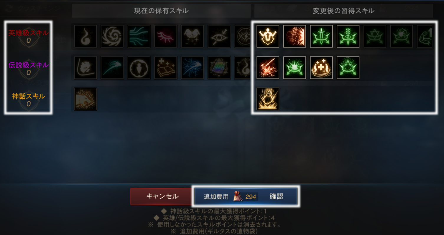 ただし、神話級のスキルの交換は最大1つまでとなります。