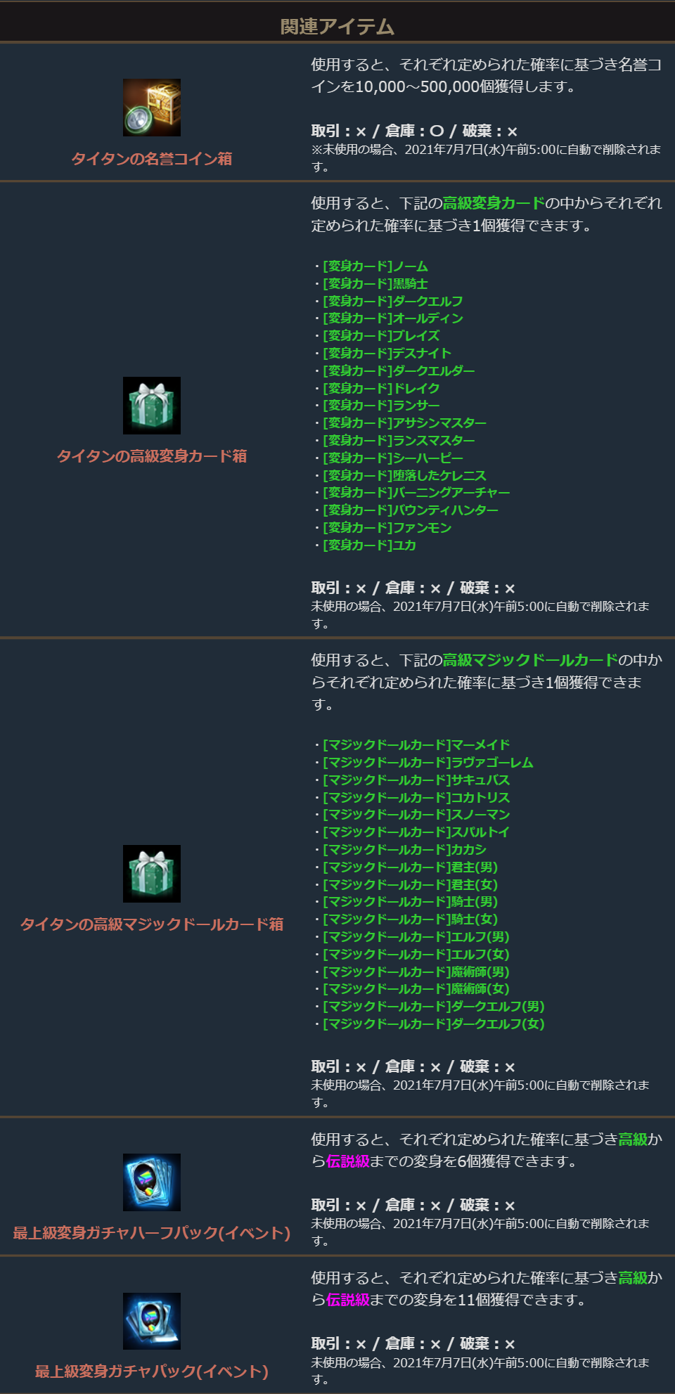 ゲーム内ショップでタイタンの支援パッケージの上級変身ガチャパックの商品説明が、上級マジックドールガチャパックの説明になっております。