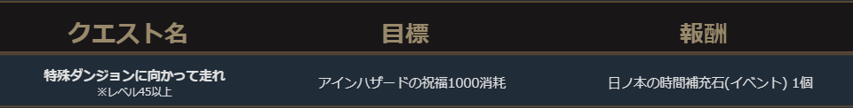 イベント期間中、レベル45以上のキャラクターには下記のクエストが毎日配信されます。