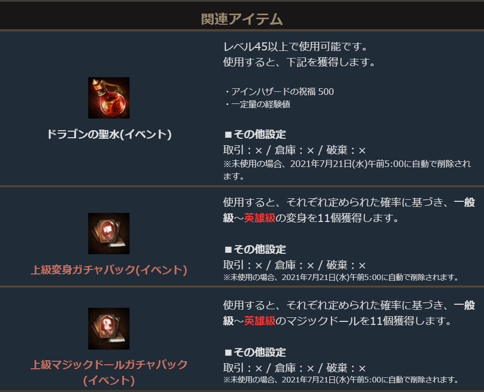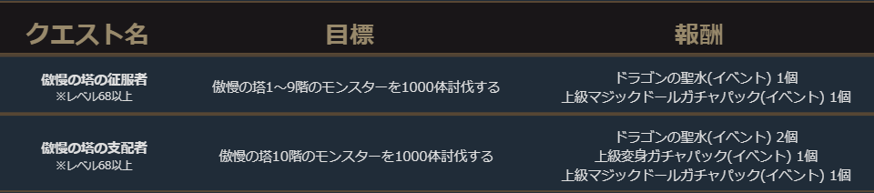 イベント期間中、デイリークエストをクリアすることで、上級ガチャパックやドラゴンの聖水などを獲得できます。