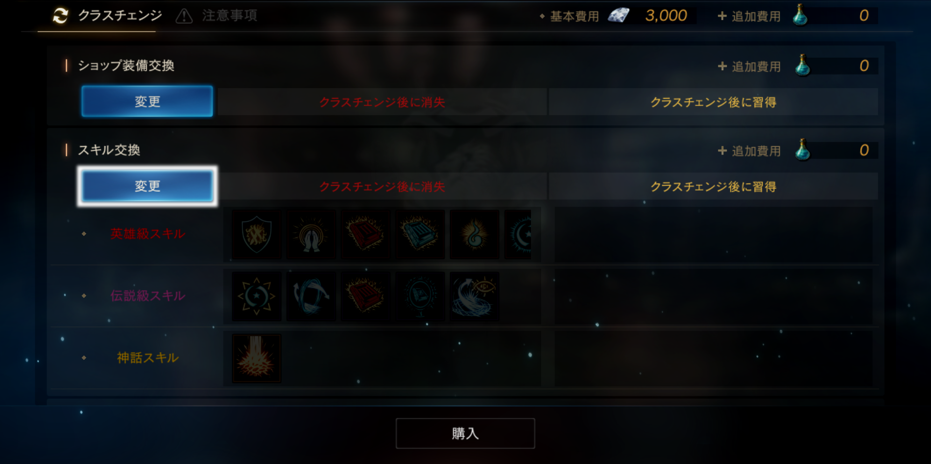 クラスチェンジは、血盟君主と騎士を除くレベル75以上の全職業のキャラクターで購入することができます。
