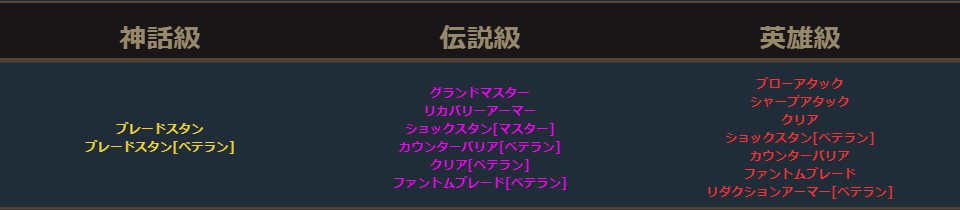 英雄級以上の習得済みスキルは、同一等級のスキルへ変換できます。