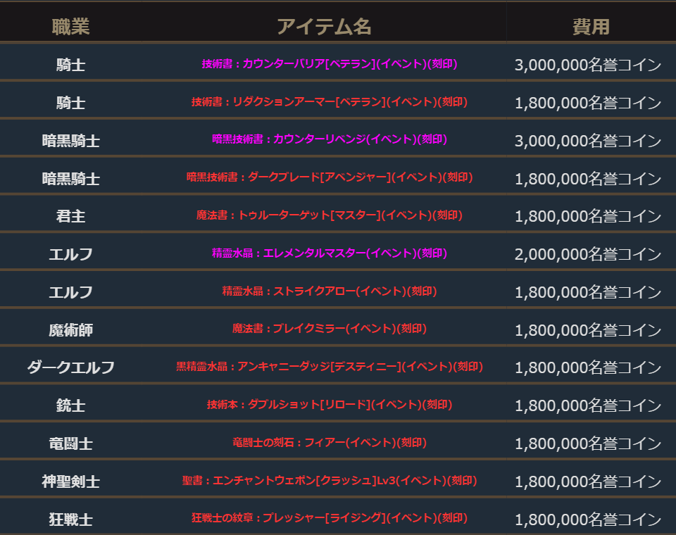 イベント期間中、ギラン村のNPC「リズ」から各種スキルブックを名誉コインで入手することができます。